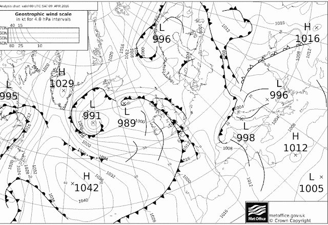 Weather chart from 9th April showing frontal system that resulted in the fall of