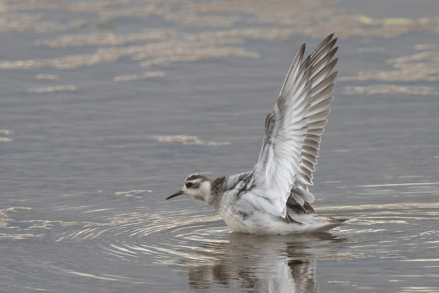 Above images all of the Grey Phalarope at the north end of the Billy Line, Hayling Island. This is a 1st winter bird with dark juvenile feathers retained on the head and upper parts