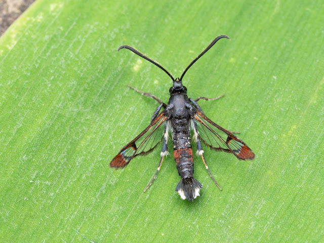 This year I eventually managed to get around to buying a set of Clearwing pheromone lures and while a took them to a few sites with me, surprisingly, my moderately urban garden in Romsey produced the greatest range of species most of which are new for me.